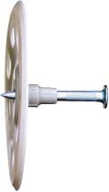 Полиэтиленовая шайба (диам. 60 мм) с Х-С дюбелем для крепления к бетону и стали мембран и дренажных пленок; изоляции толщиной до 30 мм; сетки, ткани и т.п.; гофрированных пластиковых листов.