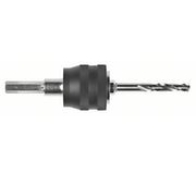 - Быстрое и надежное крепление и отсоединение центрирующего сверла и коронки одним щелчком