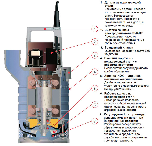 - Система защиты электродвигателя SMART, защищающая насос от повреждений при различных сбоях электропитания.