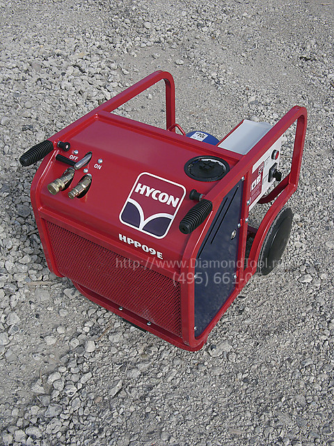Гидростанция HYCON HPP09E – это самая маленькая по габаритам универсальная электрическая станция, но ее мощность недостаточна разве что для питания больших отрезных пил. Она главным образом предназначена для использования внутри помещений, но благодаря своим компактным размерам и низкому весу может эксплуатироваться в любом месте строительной площадки. В многоэтажных зданиях HPP09E можно без труда перевозить в обычном лифте. Она используется подрядными организациями, компаниями, специализирующими на разрушении и разрезании бетона, для сдачи в аренду, а также другими специализированными компаниями. Может транспортироваться в любом автомобиле. Потребление энергии составляет всего лишь 5,5 кВт. Двигатель и блок управления сертифицированы в соответствии с директивами ЕС IP55 и IP54 соответственно, так что станция может быть использования в сложных условиях.