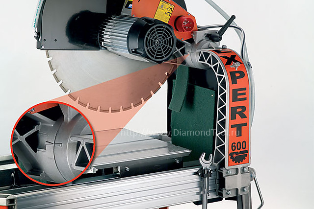 Камнерезный станок для работы на строительных объектах, существенно упрощает обработку камня, кирпича, мрамора и поротона. Электрический трехфазный мотор мощностью 4 кВт позволяет использовать диски диаметром до 500 мм и разрезать блоки высотой до 170 мм в один проход и блоки высотой до 235 мм в два прохода.