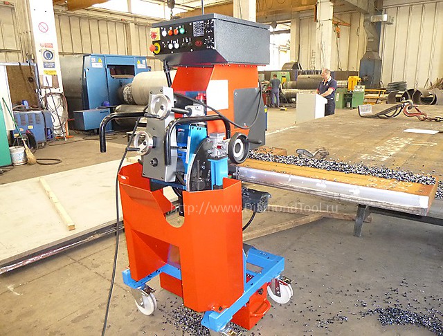 Кромкофрезерная машина OMCA SMF-910 используется для снятия фаски и удаления плакирующих покрытий с заготовок перед сваркой методом фрезерования. Фрезерная головка оснащена сменными твердосплавными пластинами, снимающими слой материала. Машина оснащена автоматической подачей. Используется в атомной промышленности, судостроении и специальном машиностроении, а также при производстве резервуаров и емкостей для химической, нефтяной и фармацевтической промышленности.