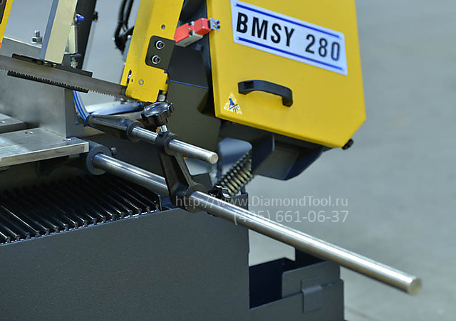 Полуавтоматичесий ленточнопильный станок BMSY 280 турецкого производителя Beka-Mak с длиной ленточного полотна 3400 мм, высотой рабочей поверхности 640 мм и скоростью резания 20-100 м/мин используются для производительной резки профильного и сплошного металлопроката. Подходят как для нарезки пакета заготовок, так и профилей большого размера. Возврат пильной рамы в исходное положение и зажим заготовки происходит с помощью гидравлики, после команды оператора.