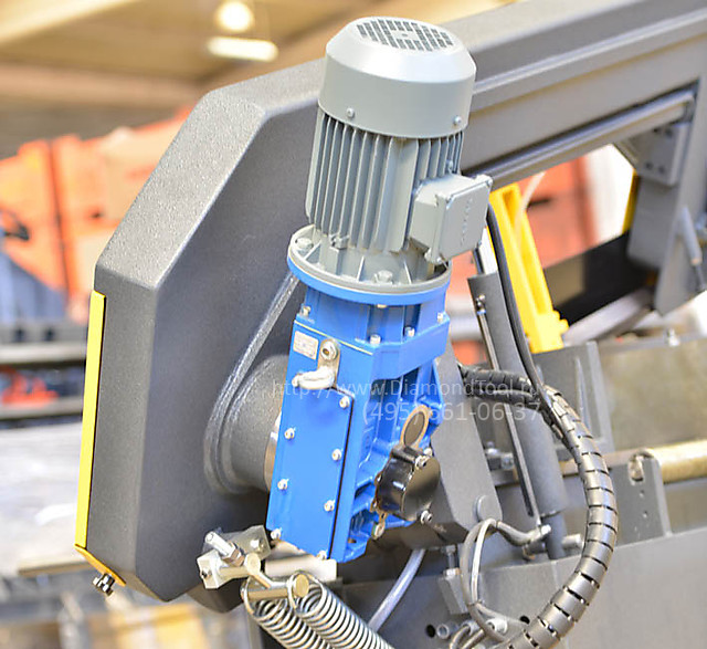 - Бесступенчатая регулировка скорости ленточнопильного полотна в стандартной комплектации. Позволяет точно настроить режимы резки под конкретную заготовку, тем самым увеличив срок службы ленточнопильного полотна.