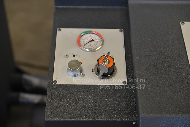 - Гидромеханическая система натяжения ленточнопильного полотна с манометром, обеспечивает надежную фиксацию рекомендуемого значения натяжения.