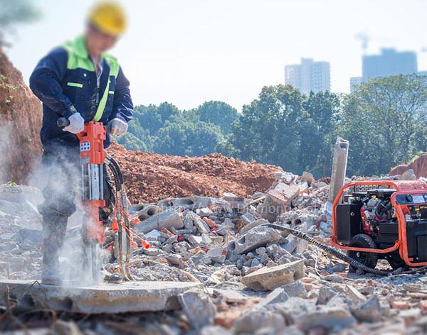 Используется для разрушения твердого армированного бетона, асфальта. Молот востребован при ремонте подземных коммуникаций, дорожных работах, работах по сносу и реконструкции, спасательных работах. Может работать под водой.