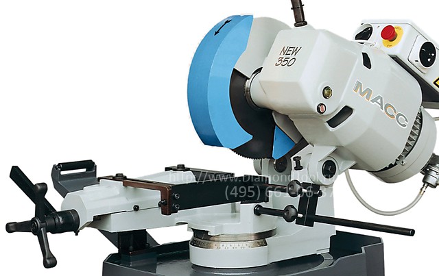 Электрическая трехфазная дисковая отрезная пила NEW 350 итальянского производителя MACC с диском диаметром 350 мм и максимальной шириной зажима 190 мм. Две скорости реза для максимальной производстельности. Данная пила позволяет резать трубы из цветных и нецветных металлов, либо других мягких материалов (пластик, ПВХ, дерево и т.п.). Так же, станок оснащается специальным насосом и фильтром для подачи охлаждающей жидкости. Общая масса станка составляет 204 кг, а сам станок легко отсоединяется от стального кожуха, что облегчает транспортировку до места производства.