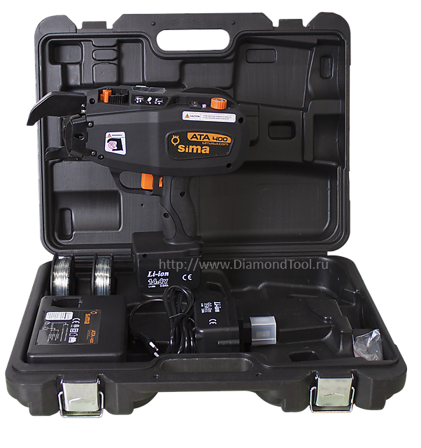 • Аккумуляторный пистолет для вязки арматуры SIMA ATA 400 в пластиковом ударопрочном кейсе с двумя катушками и зарядным устройством в комплекте