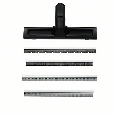 Универсальная насадка с 3 вставками: резиновая планка для сбора воды, щётка для гладких поверхностей, пластмассовая вставка для ковровых покрытий.