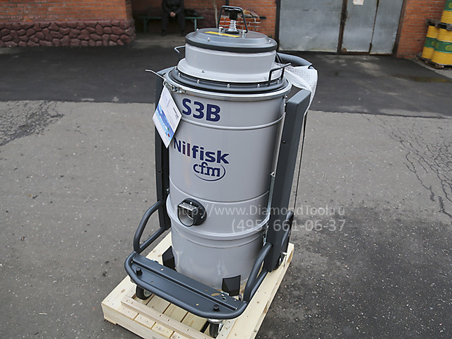 Модель S3B – однофазный промышленный пылесос с тремя байпасными моторами. Поставляется с баком емкостью 50 или 100 литров. Промышленный пылесос Nilfisk S3B - мощная универсальная модель. В строительной сфере может использоваться совместно дробеструйными, фрезеровальными и шлифовальными машинами, а также для очистки поверхности бетонных полов перед нанесением различных пропиток и др. средств. Может работать одновременно с двумя потребителями (например с двумя мозаично-шлифовальными машинами). Он идеально подходит для работы с бетонной и цементной пылью, а также опасными материалами, такими как асбест и свинец.
