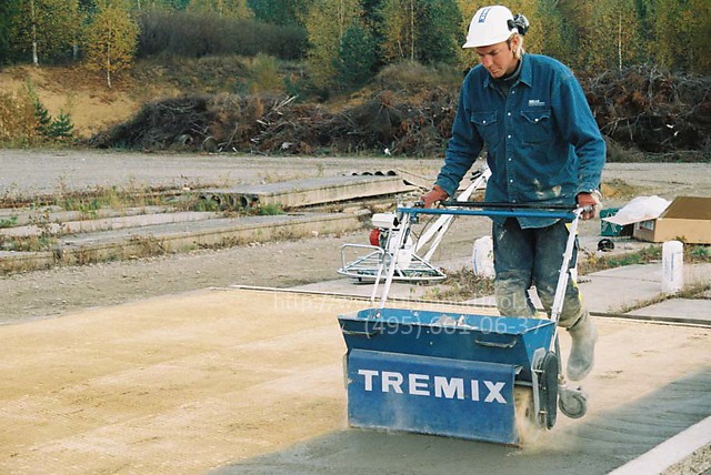 - Для данной тележки нет необходимости использовать деревянные направляющие для движения по бетону, благодаря специальному барабану, шириной 830 мм, который под действием веса тележки вдавливает материал в верхний слой бетона.