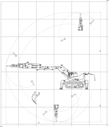 - Система стрелы DXR 140 может совершать полный оборот без ограничений, на 360 и более градусов, что делает демонтажный робот идеальным для работ в ограниченном пространстве, например, когда контейнер невозможно расположить рядом с роботом.