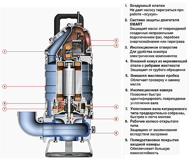 • Оснащен закрытой крыльчаткой, благодаря чему межсервисный интервал увеличивается в три раза.