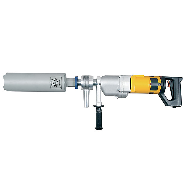 Самая дешевая сверлильная установка в ассортименте Cedima, она комплектуется однофазным сверлильным двигателем мощностью 2 кВт, способным сверлить отверстия до 150 мм и сверлильной стойкой с дюбельными подножками без наклона, с ходом 500 мм. Предельно простая, но надежная и долговечная установка с наилучшим соотношением цены и качества. Свелильный двигатель может быть использован и без стойки, вручную.