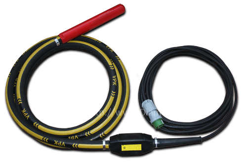 В производстве глубинных вибраторов торговой марки VPK использованы высококачественные комплектующие: итальянский кнопочный переключатель BREMAS, встроенная в статор немецкая термозащита Thermik, австрийская низковольтная вилка PCE, бандажные системы Bandimex. Вибратор требует подключение к преобразователю частоты.